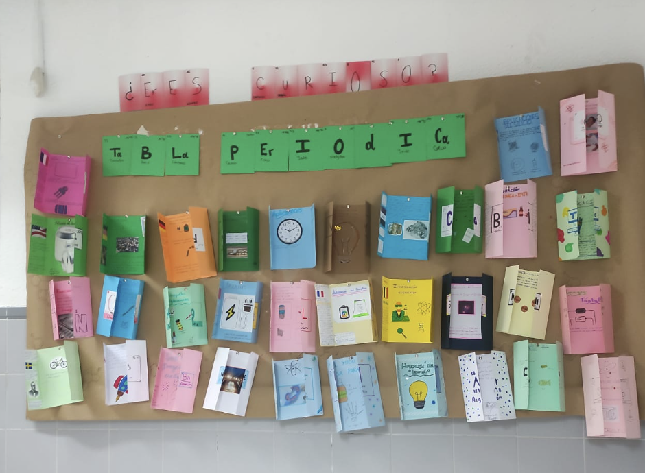 Para aprender nuestra querida Tabla Periódica, ¿qué mejor manera de hacerlo de una forma amena y entretenida? El alumnado realizó trípticos de los distintos elementos que la conforman mostrando el autor, año, hito histórico, número atómico y número másico, entre otros.