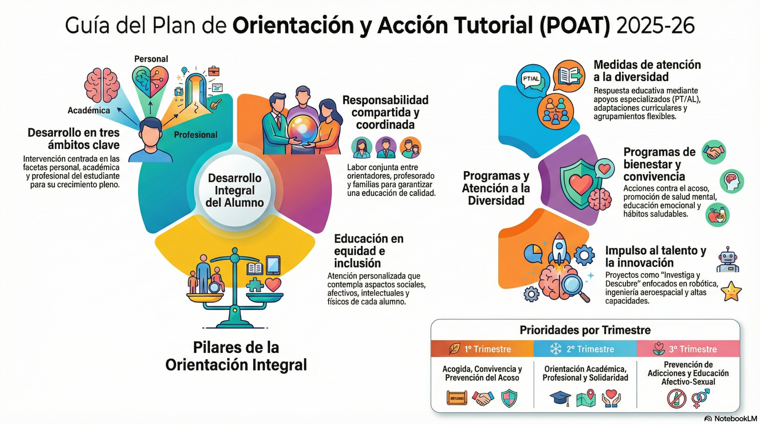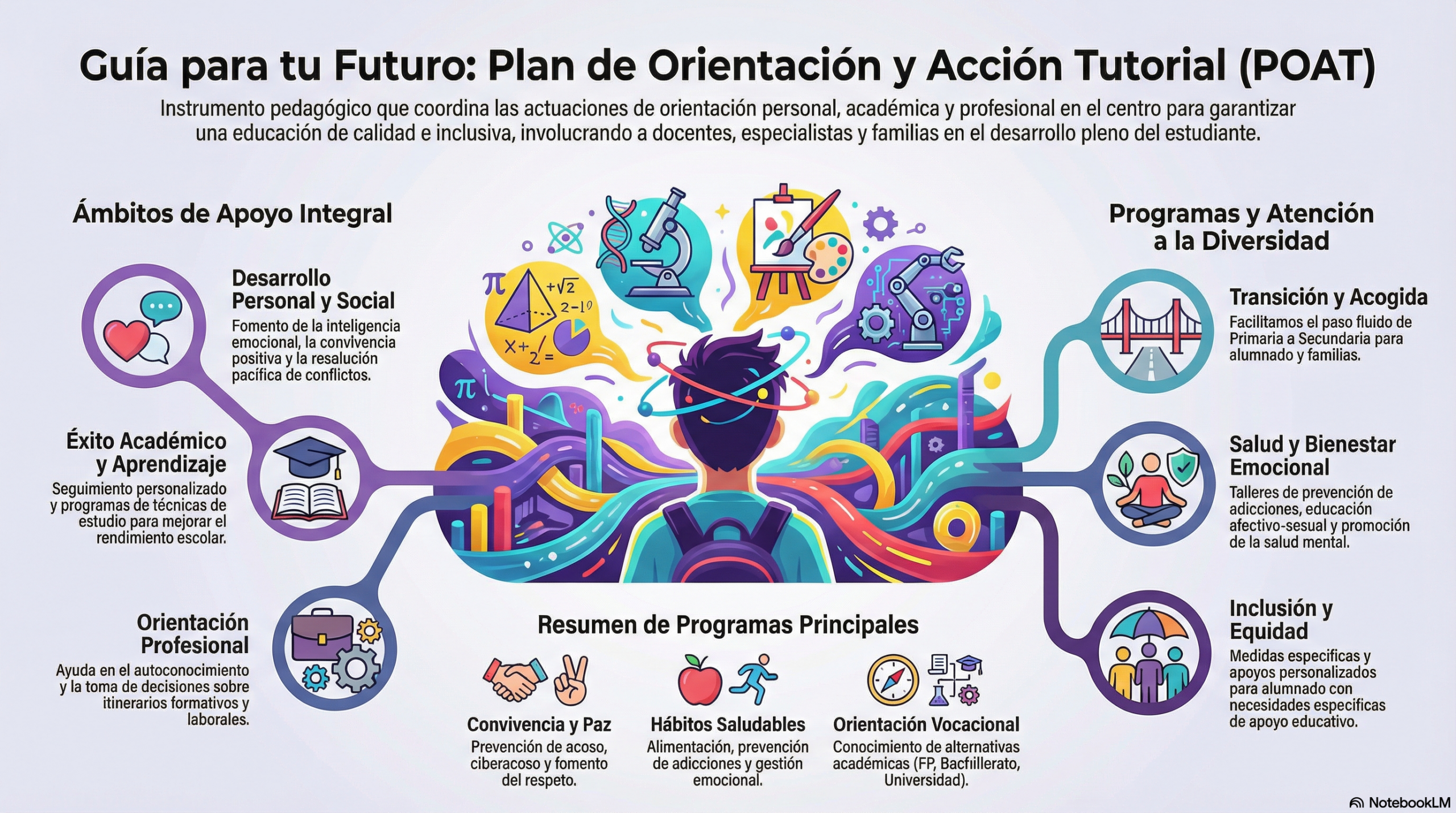 En nuestro instituto la educación va mucho más allá de la transmisión de conocimientos académicos. El Departamento de Orientación (DO) se constituye como el órgano de coordinación docente encargado de dinamizar, asesorar y supervisar la respuesta educativa a la diversidad de nuestro alumnado.