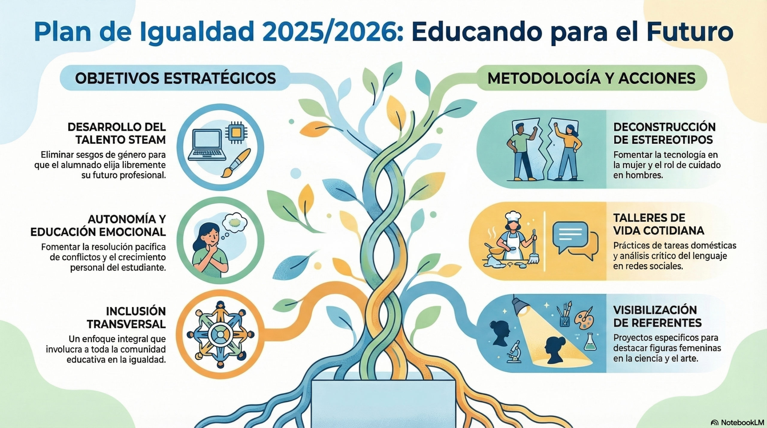 Nuestro compromiso con la excelencia educativa y la formación integral se materializa en el Plan de Igualdad 2025/2026, un marco estratégico plenamente alineado con el III Plan Estratégico de Igualdad de Género en Educación de la Junta de Andalucía. Lejos de enfoques restrictivos, concebimos la igualdad como un principio fundamental para alcanzar una educación plena, centrada en la transversalidad y la inclusión de toda la comunidad educativa. Nuestro objetivo prioritario es dotar al alumnado de habilidades que fomenten la autonomía personal, la educación emocional y la resolución pacífica de conflictos, cuestionando los arquetipos sociales para que cada estudiante pueda desarrollar su talento y elegir su futuro profesional, especialmente en ámbitos como el STEAM, sin sesgos de género.